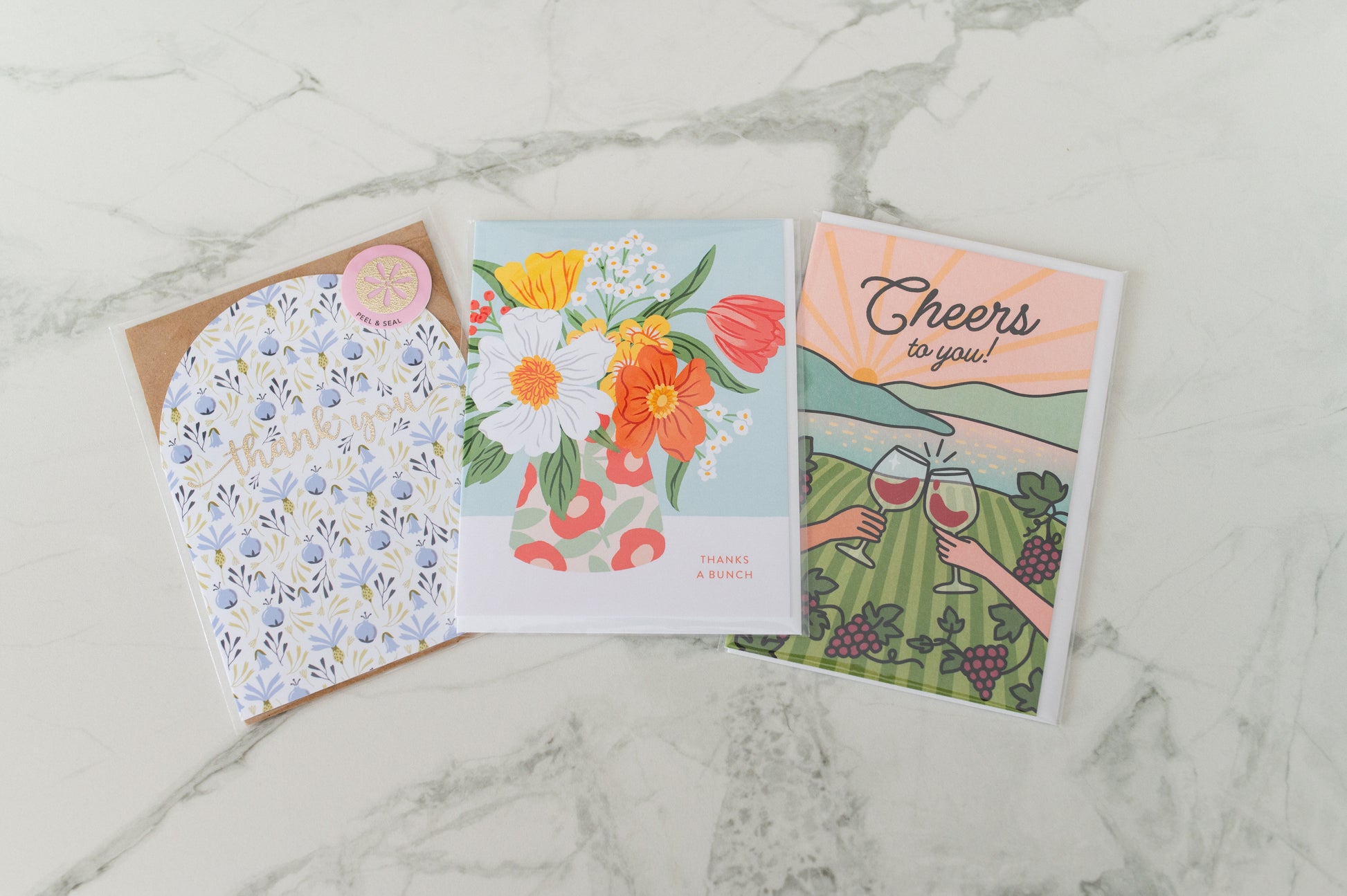 Greeting card (various artists including from left to right: Wee Birdy - Halifax, NS, Linden Paper Co. - Port Moody, BC & Ashleigh Green - West Kelowna, BC)